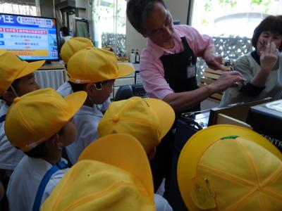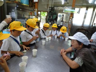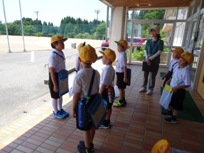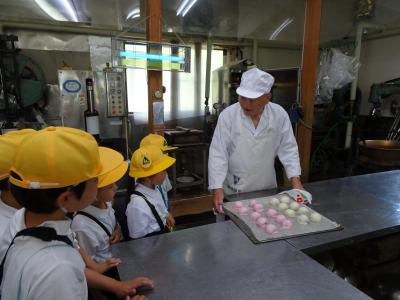 1.2年生が校区のお店たんけんに行ってきました。かやもと菓子舗さんと理容たにいさんです。かやもとさんでは蒸したてのおまんじゅうをいただいたり,たにいさんでは理容専用のはさみに指を入れさせていただいたり,バリカンなどの道具を見せていただいたりしました。子供たちの質問にも答えていただき,ありがとうございました。子供たちは,いろいろなことを発見し,多くの驚きがありました。