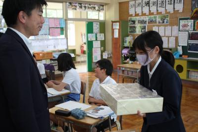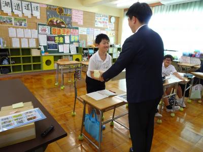 金沢法人会の講師をお招きして,「租税教室」が行われました。「税金」について,クイズを交えながら楽しく教えていただきました。子供たちは「えっ!!」と多くのことに驚いていました。クイズのひとつに「昔,日本であった税はどれ?①しょうゆ税 ②ソース税 ③マヨネーズ税」(答えは写真の下です)がありました。