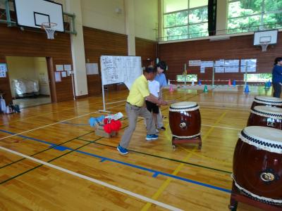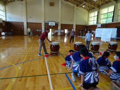 19日(水)の津幡町小学校音楽会にむけて,3~6年生が「でんでこ太鼓」を練習しています。地域の坂田俊明先生に3回来校していただいて,基本的なたたき方の指導をしていただきました。ありがとうございます。今日の5限目は,校内の発表会です。