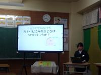 先週のかさのっ子タイムで、2年生が生活科で学習した生き物「かなへび」について、プレゼンを使って全校にクイズを出しました。写真を使いわかりやすくプレゼンをつくってあったり、クイズの答えの受け答え方も上手で感心しました。クイズで楽しく「かなへび」のことを知ることができました。