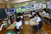↓2年生 町探検の準備です お気に入りのスポットを探検してきます.インターネットで学校付近の写真を見て確認しました.ICTが有効に授業に活用されています.