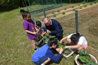 ↓5月18日(金)地域の畑の先生に教えていただきながら,1,2年生は苗植えをしました.マルチを張るのは,いろいろな意味があり,水分保持,保温,除草,水の跳ね返りによる病気予防などに効果があるからだそうです.サツマイモ,枝豆,胡瓜,なす,その他,ハーブの苗を植えました.畑の先生には植え方を教えていただいただけでなく,耕し,畝をつくり,風で倒れないように棒をたて,つるが巻き付けるようにわらで「手」をしていただき,おかげで立派な学校農園になりました.子供たちが,地域の方とふれ合い楽しく野菜を植えた体験は,子供たちの心に残る温かい思い出となったことでしょう.蒸し暑い日でしたが本当にありがとうございました.