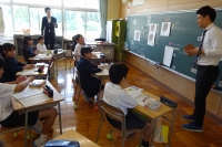 ↓その後,2校の教員で授業研究を行いました.子供たちが学習ガイドを中心に自分たちで主体的に授業を進めていること,教師は出る場所を考え適切に指導していること,まとめや適用問題をすることで確実に基礎基本の定着が図れることを話し合いました.有意義な研究会となりました.
