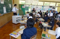 ↓ 1,2年音楽 歌声指導専門の先生をお招きし,きれいな声で歌う学習をしました.口を開けるポイントを教えていただき,試してみると,すぐに変化が表れました.楽しくて笑顔いっぱいの時間でした.定期的に指導に来て下さるようお願いしました.またお会いできるので楽しみです.