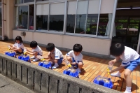 ↓1年 朝顔の種を5つ,まきました.お水をたっぷりあげるので,きれいなお花を咲かせてくださいねと種にお話しました.