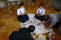 ↓ 3年生は社会科で自分たちが住んでいる地域の土地利用や交通の広がり,古くから残っているもの等の特徴を調べ,校区地図にまとめてきました.今日はやっと完成しました.次は,町の様子についての学習に広がっていきます.