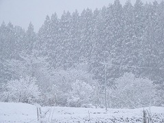 ↑今朝の笠野は0℃でした。粉雪が木の枝に綿帽子のように積もり、繊細な美しさです。
