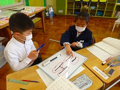 ↓1年生は書初め大会の良い姿勢が継続しています。集中して漢字練習です。