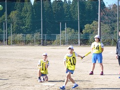 ↓ 5,6年 ベースボール型のゲームです。飛行機雲めざして、思いっきりバットを振りました。