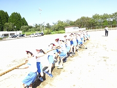 ↓ 昼休み全校で運動会の石拾いをしました.その後大綱引きの練習です.