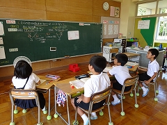 ↓ 久しぶりの登校です。朝,運動会の後片付けや掃除をてきぱき協力して行いました。自分から進んで仕事を見つけるので,少人数でもあっという間にきれいになります。よい運動会ができ,子供たちは満足して,学習を再開できたことでしょう。