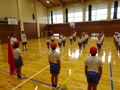 ↓ 運動会開会式練習,体育館で行いました。開会式の流れを一通り行い,見通しが持てました。これまでの体育での学びを開会式でも発揮できるように整列,行進の仕方を確認しました。