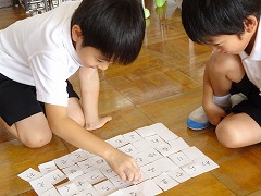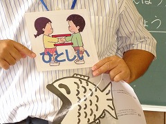 ↓ 2年生 漢字クイズをしていました。自分が考えたクイズを,自信を持って嬉しそうに発表しています。