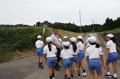 ↓ マラソン大会のコースの下見に行ってきました。コースを覚えること,坂道の状況を掴むこと,車の安全を確認する場所,小石や栗のいがなど滑るものがないか等確かめました。