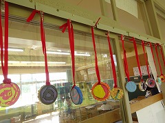 ↓ 1,2年合同で図工をしました。メダルづくりです。2年生は,1年生に優しく教えほほ笑ましい姿が見られました。
