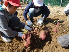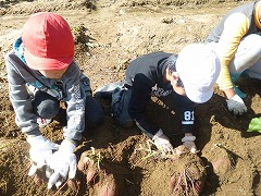 ↓ 1,2年生が芋ほりをしました。今年は豊作でした。大きなサツマイモがゴロゴロ顔を出してきましたよ。畑の先生に教えていただいたおかげです。ありがとうございます。子供たちも大喜び、このサツマイモで今後、パーティーを予定しています。