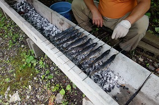 昼食は焼きたて焼き魚&おにぎり弁当でした。