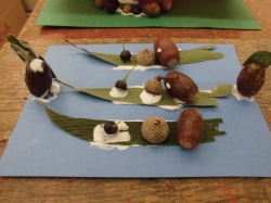 テーマは「秋探し」。何があるかな?どんぐり、葉っぱ、きのこ・・・。