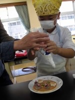今回は、エプロンにマスク姿。雰囲気が違います。