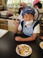 今日はおかし作り。ホットケーキの上を賑やかにデコレーションしていきます。