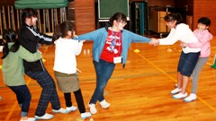 今年度第1回目の刈安小学校との2校交流である,なかよし遠足が行われました。残念なことに,この日はあいにくの雨。期待していた石川県森林公園(緑化の広場)に行くことはできませんでした(バスで相互訪問している関係上,延期はできないのです)。そこでこの日は,笠野小学校の体育館で,たっぷりと交流活動をしました。ゲームは3つ。写真左から,手つなぎフラフープ,ケイドロ(最後は,先生方が鬼。本当に捕まえていいものか悩みながら追いかけました。),じゃんけん陣取りゲームでした。