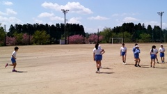 運動場では,3時間目の体育に向けて,5・6年生が集まってきていました。実は,15日(土)に運動場全体に除草剤を散布。昨27日(木)にタイヤを引きずって半分枯れた状態の雑草を始末(実際には倒しただけ?)したのです。それで,この日の運動場は,すっきりときれいな状態でした。児童たち,気持ち良く体育できたことと思います。