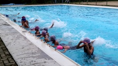3・4年生の水泳学習です。スイミングスクールに通っている児童も数名いて,さすがの泳ぎ(クロール,平,バタフライ)を見せてくれました。それ以外の児童たちも,精一杯泳いでいました。この調子なら,みんな,夏休みまでには,かなり上手になってくれそうです。
