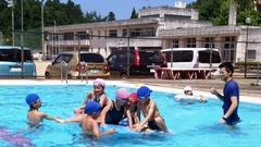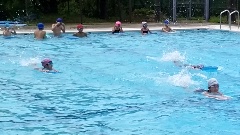 サマースクール最終日,やっと晴れました。いよいよ梅雨明けでしょうか?中学1年生の先輩2名も指導してくれました。うち1名は,水泳部。最後に,メドレーで,すばらしい泳ぎを見せてくれました。