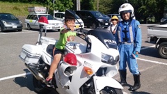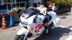 公民館の交通安全教室がありました。学童の児童たちは,公民館のホールに入り,交通安全の寸劇を楽しみました。(詳しくは,次の公民館便りをご覧下さい。)晴れてくれたおかげで,県警高速機動隊の女性白バイ隊員(県内で2名しかいない)の谷口さん(吉倉出身)が,白バイ(交通取締用自動二輪車)に乗って来てくれました。(これは,HONDA VFR800Pです。)下校途中に前を通った児童たちにも跨がせてくれ,児童たち大喜びでした。警察官になりたいという夢がある児童(左写真)は,特ににこにこ顔でした。