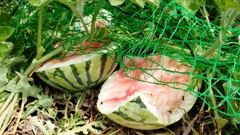 ※8月14日に確認したところ,残っていたはずの1個も跡形もなく姿が見えなくなっていました。脱帽です。食べた跡も残っていないことから,畑の外に運び出したのだと思われますが,あのネットの上を,どうやって重いスイカを乗り越えさせたのでしょうか?