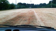 予定通り,タイヤを引きました。先日の除草剤散布で枯れた雑草は,赤茶けて枯れていました。これで運動会まではもたないと思うので,8月末~9月はじめまでに,もう一度,一連の除草作業が必要だと思われます。