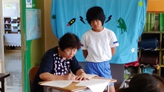 この日,昨年度の事務の長久先生がおいでになり,児童たちを励ましてくださいました。児童たち,大喜び。いつも以上にがんばっていました。(写真は,長久先生に撮ってもらったものです。中央の写真などは,一番前の児童にピントが合っており,後ろに行くほどピントがずれています。遠近感のある,すばらしい写真ですね。)