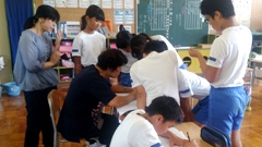この日は,どの先生の作業が,今どの程度の進捗状況なのか互いに見比べることができ,とっても効果的でした。すばらしい機能なので,授業でも使っていきたいです。ちなみに,この機能のある電子黒板は,昨年導入された新しいものにあるだけで,6年前導入の電子黒板には,この機能はありません。しかし,こちらでもいろいろなことができるので,また使用法を研修していきたいと考えています。