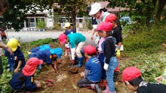 2日前に保育園で芋掘りをしたばかりですが,やはり,自分たちのさつまいもを掘り出す喜びは,格別なものがあったのでしょうね。畑の先生方には,これまで本当にお世話になりました。お陰様で,今年は一度もイノシシに畑を荒らされることなく,本当にたくさん収穫できました。誠にありがとうございました。11月2日(木)のわくわくパーティー(感謝の会)には,是非お越し下さい。