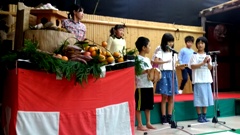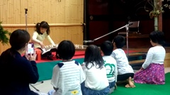笠野公民館の観月会(笠野秋の宴)に,本校児童5名が参加。歌に踊りに琴の演奏と大活躍。観月会においでた地域の方々を楽しませてくれました。はじめに,津幡町歌などを歌ったあと,「恋」ダンスなどを歌ったり踊ったり演奏したり。最後は,Hさんによる琴の演奏までありました。写真には写っていませんが,会場には,たくさんの方々がおいでました。(和室では,美味しいお茶と和菓子もいただけました。)ちなみに,今回,「笠谷村歌」も披露(ギターは,昨年度の学校評議員であった稲葉さん)されました。なんでも本校のでんでこ太鼓指導者である七黒さんが歌詞をお持ちだったことで,歌を覚えている方々の協力により楽譜が復活し,60年以上ぶりに歌われたのだとか。笠野地区は,今でこそ津幡町ですが,当時は笠谷村だったのですね。しっとりして,いい歌だなあと思いました。