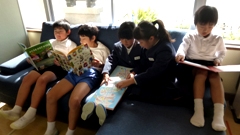 この日から,毎週火曜日を「よむよむデー」とし,休み時間に積極的に図書室に足を運ぶ日としました。1~3年生は長休み,4~6年生は昼休みです。初日のこの日は大盛況。図書館司書の中田先生にお勧めの本を教えてもらったり,じっくりと座って集中して読んだりと,すてきな時間を過ごしていました。(登美)