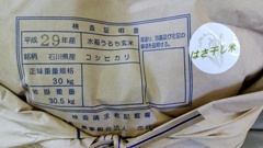 春に植えて、9月に稲刈りしたみんなの笠野米。30kgが5袋、総重量150kgのはざ干しの新米を、JAの方が届けて下さいました。25日の給食時間にお披露目をしました。普段見る機会の少ない、大きな米俵に興味津津の子ども達でした。ということで来週半ばからの笠野給食は、いよいよみんなの笠野米コシヒカリ!新米はかめばかむほど甘味が感じられるといいます。よーく噛んで、笠野の台地の恵みをみんなカミカミして味わいましょう。(甲部)