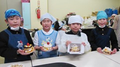 公民館にて「クリスマスマフィンを作ろう」が行われ,児童14名が参加しました。講師の方々(吉田良美さん,河本直美先生)による指導で,おいしいパンケーキ(マフィンの予定でしたが,諸事情でパンケーキになりました。)ができました。JA石川かほく公式キャラクター「ほくの里」も応援に来てくれました。よかったですね。