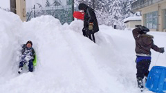 この日の朝,想像(覚悟)していた以上に雪が積もっていました。(運動場の積雪は,80cmにも達していました。)職員は,何とか学校へたどり着きました。(津幡地区から笠野地区まで歩いてきた職員や,自家用車をJAさんに置かせてもらい,そこから歩いてきた職員などもいました。)学校は,笠野地区の現状を確認し,保護者の方々へ緊急メールで,「授業は3時間目から行うことと,安全に十分に気をつけて登校してほしいこと」などをお知らせしました。登校できた児童は,(職員が,保護者の方々に連絡した後,)午後2時に集団下校(職員が,それぞれの集団の集合場所まで一緒に歩いて送る)で帰宅しました。(それまでには,歩道除雪車で,学校から蓮花寺のT字路までの歩道を確保しておきました。)そんな中,一部の児童たちは,除雪車が積み上げた雪山でソリ滑りを楽しんだりしていました。
