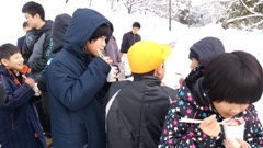 笠野公民館主催の左義長に参加しました。場所は,本校運動場南隣の鳥越地内です。児童たちは,冬休みの書き初め練習用紙を燃やしてもらいました。児童たちは,「書き初めを焼いた時に炎が高く上がると字が上達する」と言われていることを知り,一生懸命に字の上達を願ったり,灰が上がると,喜んで指を指したりしていました。最後に,公民館からぜんざいをおよばれしました。とってもおいしかったです。お世話してくださった皆様,ありがとうございました。