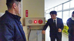 津幡消防署から島さんをお招きし,火災や人命蘇生に関わる非常時に,AEDや消火器・消火栓及び火災報知器などの器具を職員が適切に操作できるように学習しました。実際に火災報知器を鳴らしたり,消火栓ポンプを起動したりと,なかなかできない充実した訓練ができました。島さん,ありがとうございました。