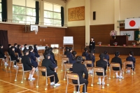 安全帽子をいただき,交通ルールを守って安全に登下校することを誓いました.