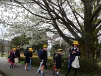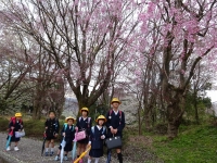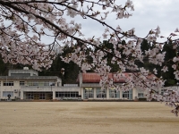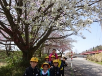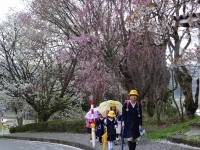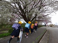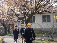 校門付近の桜が見事です.桜に迎えられ,子供たちは元気に登校してきました.