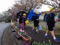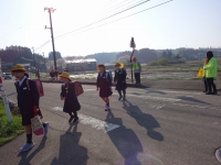 こんな肌寒い中,地域の皆様には朝早くから子供たちの安全を見守りいただきましてありがとうございます.また,地域の方々とのあいさつで子供達も安心と元気をいただいていると思います.今後ともどうぞよろしくお願い致します.