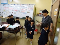 身体測定を行いました.どれだけ成長したかな.6年生は1年生の手を引いて優しくお世話してくれました.身体測定が終わったら6年生は1年生に本も読んでくれました.とても頼もしい6年生です.