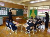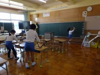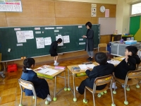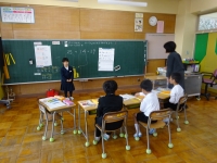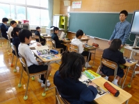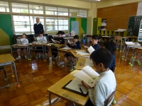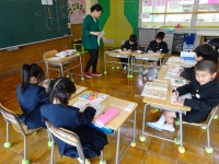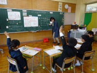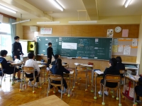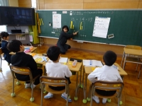 ↓1年生 動物の仲間分けの授業は,算数です.しっかりとした姿勢でよく先生のお話を聞いています.どんどん賢くなってください.