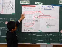 ↓2年生 算数 〈表とグラフ,どのような特徴があるかな〉「グラフはいちいち数えなければ数は分からないけれど,表は数はすぐにわかるよ」という意見に,「グラフでも,5のところが目印になっているので,5を見て,それより2つ多ければ7とすぐに分かります」という意見を言ってくれる子がいました.自分の考えを出し合うことで,表の新しい見方を学び合うことが出来ました.
