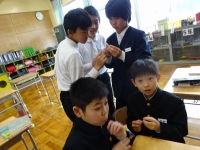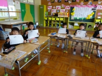 ↓2年生 1年生と仲良くする会を計画!司会さんが上手に会を進行しました.こままわしやおはじき,お手玉など2年生が見本を見せてあげ,1年生は大喜びです.1,2年生一緒に楽しみました.