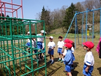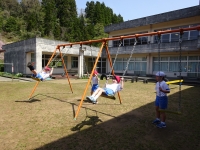 ↓お天気がいいので,1,2年生は元気に遊具で遊びました.