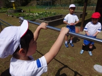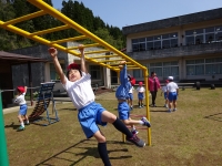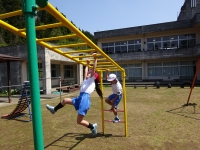 ↓1.2年生合同で体育をしました.2年生が遊具の安全な使い方を1年生に教えてくれました.鉄棒の安全な握り方も教えてくれました.